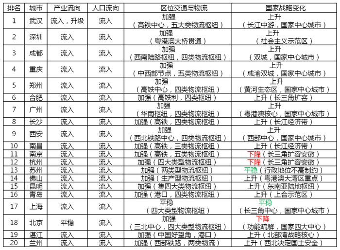 根据四大标准,2022年中国最有潜力的20大城市是: