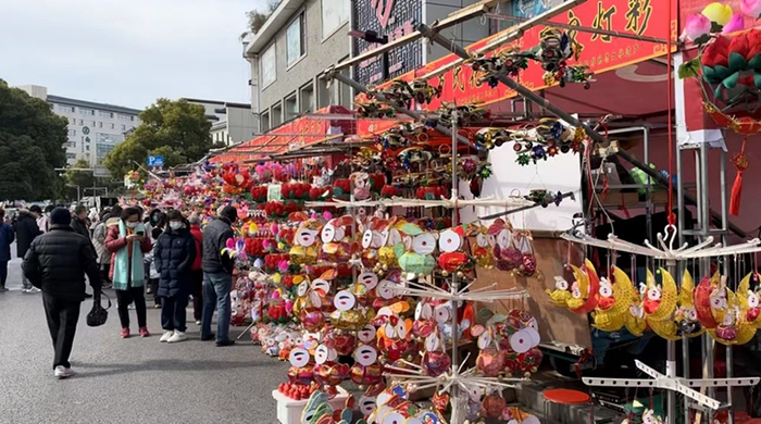 今年春节期间,南京夫子庙景区则时隔三年,再次推出新春花灯市集,邀请非遗传人手扎花灯供应市场。今年兔子花灯成为最畅销的年货花灯,秦淮花灯非遗传承人曹真荣今年80岁了,他和老伴亲手扎了一千多盏花灯不到5天就卖脱销,最紧俏的大号兔子花灯大年初一就卖完了。