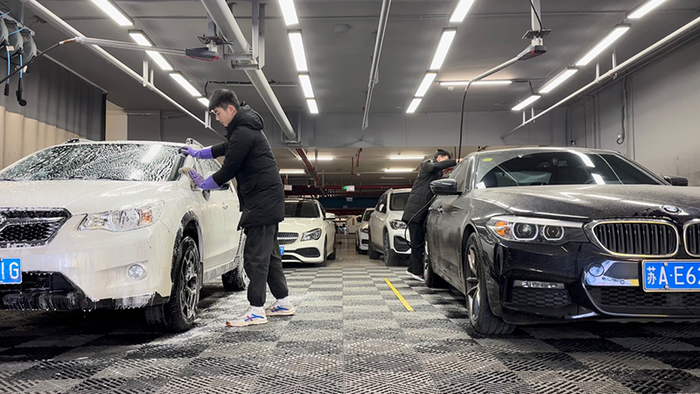 在苏州,不少城市洗车店生意红火,特别是大型商业综合体地下修车店,随着商超人流车流的增加,洗车店生意也随之增长,生意最好时一天清洗量较平日翻番。“以前一天洗二三十台,这两天每天都是四五十台,价格也差不多涨了一倍。”苏州新区某洗车店老板介绍说,他和合伙人春节七天都没有回家过年,坚守小店开门营业,挣了不少钱,准备等节后再轮流回家看看。
