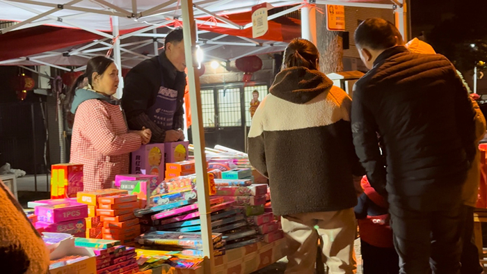 在镇江扬中,不少乡镇今年春节利用广场、景区空地,搭建起年货集市,吸引不少市民前往赶集选购,市民可在购物消费的同时寻找年味、体验土地民俗风情。镇江扬中西来桥镇今年特别推出烟花市集,吸引来不少本地居民和外地游客前来选购消费。烟花经营摊主笑着说,“看到夜晚星空中各式各样的烟花,就知道今年烟花销量不错,人们心情也愉快了,放烟花来助兴。”