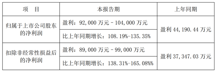 万凯新材发布的2022年度业绩预告显示,2022年该公司预计归属于上市公司股东的净利润为9.20亿元至10.40亿元,比上年同期增长108.19%-135.35%;扣除非经常性损益后的净利润为8.90亿元至9.90亿元,比上年同期增长138.31%-165.08%%。