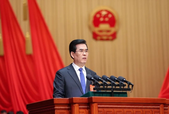 2023年1月13日上午,贵州省第十四届人民代表大会第一次会议在贵阳隆重开幕。图为李炳军作政府工作报告。贵州日报天眼新闻记者 张凯 摄