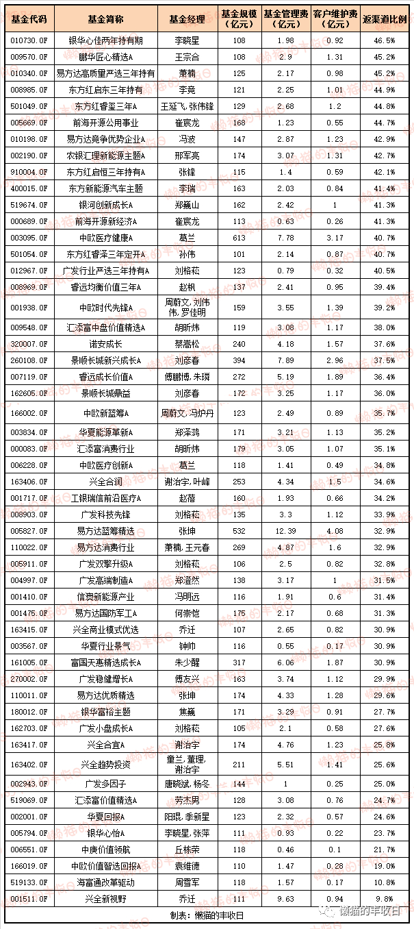 首先,渠道会拿走一部分,基金公司以“客户维护费”的形式把一部分管理费返还给渠道。