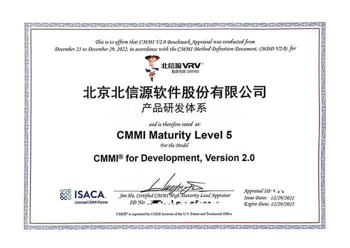 北信源于2022年底开展了能力成熟度模型集成CMMI 5级的正式评估,并顺利通过认证,近日取得了CMMI 5级证书,标志着北信源在软件工程技术研发能力、软件过程组织能力、项目管理能力、方案交付能力等方面持续位居行业领先水平,产品研发体系成熟度再获国际权威认可。