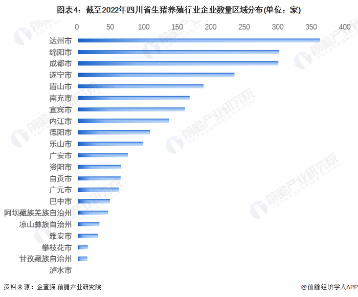 ──四川省生猪养殖行业企业主要注册在达州、绵阳和成都