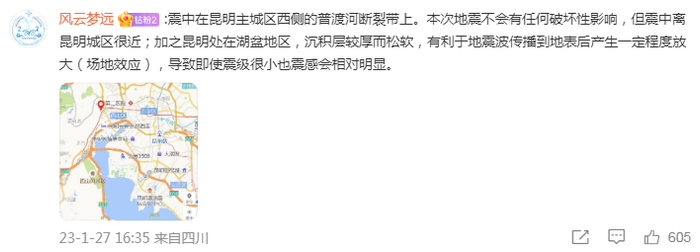 通常3.0级以下地震不会被国家地震台网正式播报。但由于正位于昆明主城区一带,周边人口密度较大,因此即使震级很小也仍然播出,并标出了“有感”。