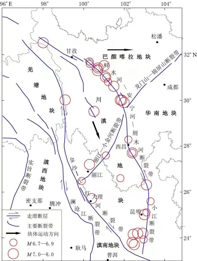 作为川滇菱形地块内部的断层,【普渡河断裂带较小江断裂带活动性和规模都弱很多】,发生强震的频率也非常低,其中昆明附近一段在过去数百年均未发生过6.0级以上强震,近代最大一次为1925年富民县的5.5级地震。