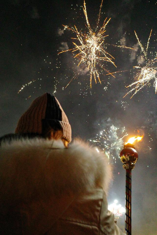 2023年1月24日,大连,市民游客在瓦房店驼山海滨景观带燃放烟花。