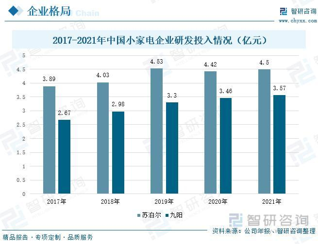 近年来,小家电头部品牌集中发力线上市场,集中度有所提升,尾部品牌受到多方承压。不论是线上渠道还是线下渠道,市场都以美的、苏泊尔和九阳为主。随着我国人均可支配收入的逐步提高和消费能力的增强,居民对家电行业产品品质提出了更高的要求,特别是健康化、智能化家具越来越受到大家的欢迎,而企业研发投入的提高,能够很好的为大家开发新产品,进而满足广大消费者的需求。