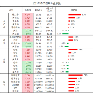 展望节后,预期A股市场关键指数或呈现补涨行情,一方面长假期间全球权益市场关键性指数普遍收涨,整体利多节后国内权益市场情绪修复;另一方面国内高频数据显示消费受长假效应带动修复提速同时国内疫情风险并未明显上升,“弱现实”向“强预期”方向有所靠拢;其次,微观资金层面利多信号或将持续,北上资金自1月份开始加速流入且单月净流入资金超1100亿(已经超过2022年全年水平),预期这种格局节后还将持续并有望带动国内增量资金入场;整体来看,长假窗口消息面利多节后市场情绪,国内高频数据显示经济修复进程有所提速,资金面北上资金加快流入格局有望持续,同时A股市场关键指数相对估值水平仍处低位,节后期指有望延续震荡上行格局。