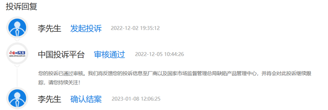中国投诉-全国缺陷产品投诉平台于2022年12月2日收到该投诉,核实相关信息后,迅速组织工作人员与厂家进行沟通。2023年1月8日,投诉车主李先生在平台提交结案。记者在发稿前电话联系投诉车主李先生得知,由于自己急于用车,而4S店依然认为车辆不存在质量问题,并已经出了质保周期,需要李先生自己花钱维修和更换,无奈之下李先生已经找到了其他汽车维修店面自己掏钱进行了车辆冷却液泵的更换和维修。另外车主李先生表示,自己的丰田凯美瑞开了4年就出现了冷却液泵的故障,自己平时正常维保,冷却液泵自己从未动过,难道这不是质量问题造成的吗?自己虽然提交了结案,但心里还是百般复杂。最后投诉车主李先生也提醒广大车主:希望大家了解好车辆的质保周期是多久,在出质保期前给车辆做一个全面的检查,避免出质保期后自”掏腰包”。