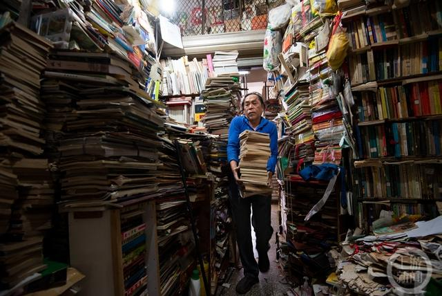 店里的书包罗万象,种类繁多,两间门面被各类书籍塞得满满当当。