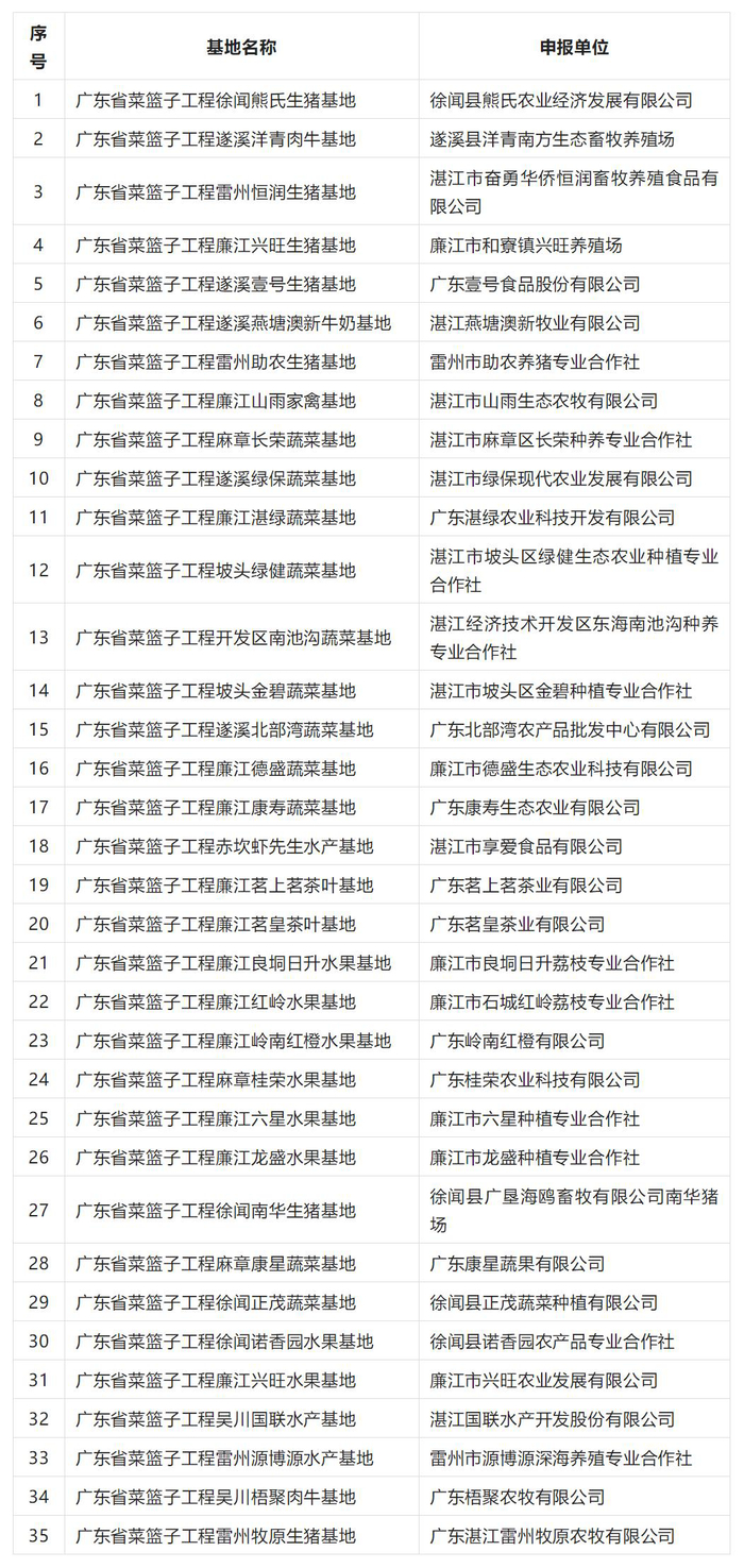 事关“菜篮子”!湛江这35个基地和3个市场入选省级名单