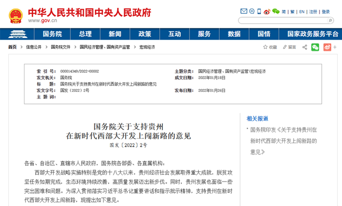 新国发2文件中提到,要持之以恒推进生态文明建设,改善提升自然生态系统质量,科学推进赤水河流域等一体化保护修复、实施重点流域水环境综合治理等举措。