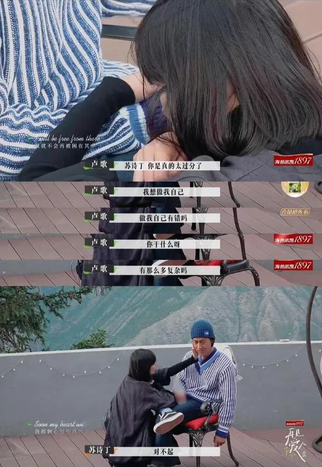 但在节目中,聊起二人的感情问题时,苏诗丁被问及“为何将克制作为本能”的时候,又一次向大家回忆起童年的这段经历,这时候的卢歌只是神情冷漠地质问:“这和我们的感情有什么关系?”