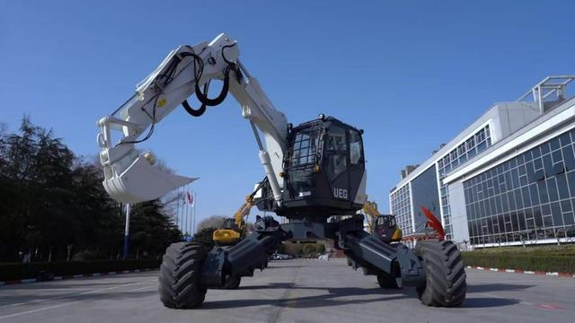 由徐工集团生产,在徐工集团官方抖音号中介绍,世界上只有5个国家能够制造这种设备。钢铁螳螂可以通过56个动作,在高海拔地区、沼泽、林地等复杂地带“如履平地”。它对极限温度也有极强的适应性,可在零下40度和高温50度极限温度下作业。这种挖掘机最大爬坡45度,最大越障高度2.4米,最大跨越壕沟宽度4米,最大涉水深度2米,同时可以搭载不同工作机具,实现挖掘、灭火、伐木、切割、破碎、钻孔、剪切、打桩等多种作业功能,在雪崩、地震、滑坡等灾害现场进行各种应急救援工作。