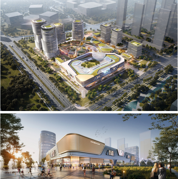 位于中央创新区十字发展轴的综合服务北端点的未来广场A区已全面开工建设,项目采用围合式布局整体形态错落有致,规划有八栋街区式商业、七栋高层办公楼、一栋综合服务商业、一栋展示中心,景观设计以一轴两心三组团为设计理念,是一次基于城市空间的全新设计,塑造出具有整体性、实用性及艺术性。