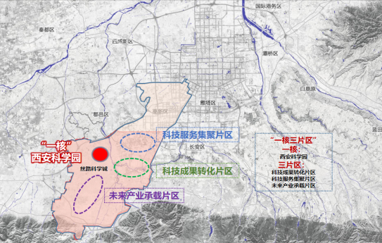 建设“双中心”核心承载区,以“硬科技”为特色,以丝路科学城(西安科学园)为主要承载空间,聚焦打造“科学、科创、产业、服务”四大圈层,构建“基础研究—应用研究—成果转化—产业化”全链条创新体系,中央创新区首当“双中心”城市综合服务功能圈层。