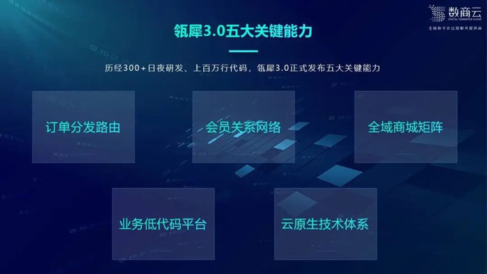 瓴犀3.0公布了订单分发路由、会员关系网络、全域商城矩阵、业务低代码平台、云原生技术体系五大关键能力。加强企业供应链在不同维度、不同层级以及不同环节的协同能力,提升对于企业外部供应链的合作力度与粘性,打造全链路协同的供应链,更好地实现降本增效。