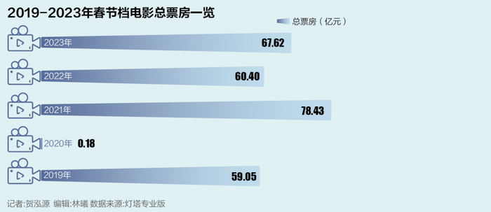 据国家电影局初步统计,2023年春节档电影票房为67.58亿元,同比增长.89%;观影人次为1.29亿,同比增长13.16%。