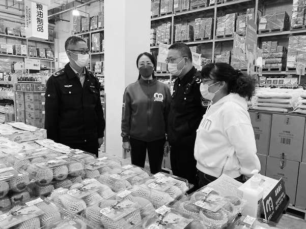 图五:南京市雨花石区市场监管局执法人员对超市展开专项检查。