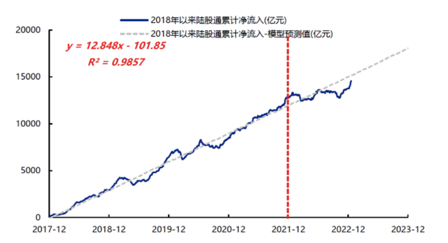 根据线性回归模式推导出,今年A股可能还有4000亿要流入。