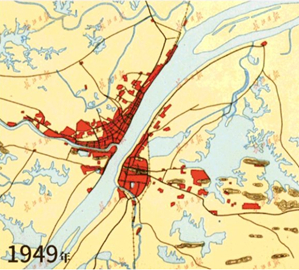 图1:武汉围绕中心城区发展,逐步向东南扩建