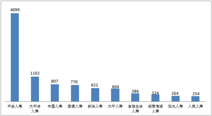1.销售纠纷投诉量情况。人身保险公司销售纠纷投诉量居前10位的为:平安人寿4099件,占平安人寿投诉总量的66.42%;太平洋人寿1163件,占比60.10%;中国人寿807件,占比46.65%;泰康人寿770件,占比55.76%;新华人寿622件,占比48.90%;太平人寿604件,占比56.13%;富德生命人寿386件,占比53.54%;招商信诺人寿324件,占比74.14%;阳光人寿264件,占比59.59%;人民人寿254件,占比43.49%。