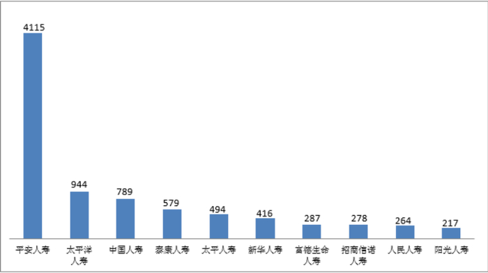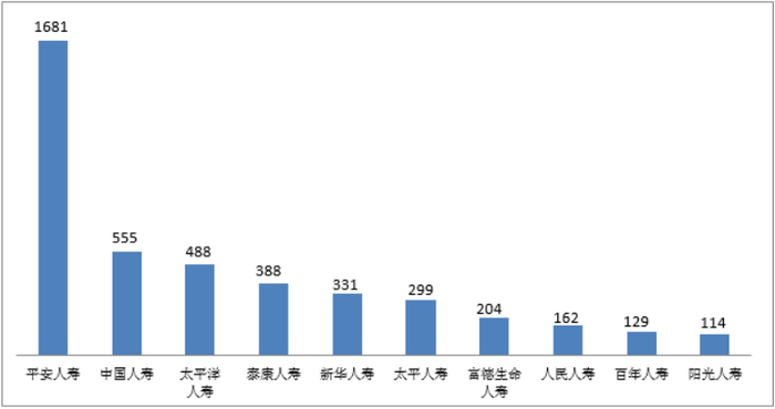 (二)人身保险公司投诉量情况。人身保险公司投诉量居前10位的为:平安人寿6171件,占人身险投诉总量的30.07%;太平洋人寿1935件,占比9.43%;中国人寿1730件,占比8.43%;泰康人寿1381件,占比6.73%;新华人寿1272件,占比6.20%;太平人寿1076件,占比5.24%;富德生命人寿721件,占比3.51%;复星联合健康678件,占比3.30%;人民人寿584件,占比2.85%;百年人寿456件,占比2.22%。