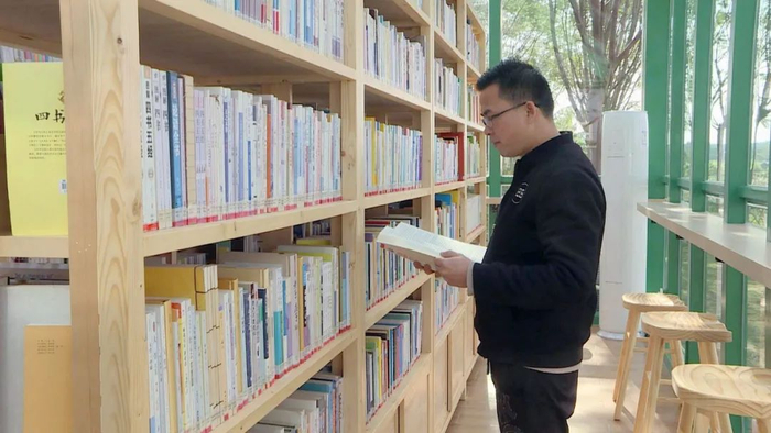 龙湖镇后郭村村民 蔡树玉:村里建设这个阳光书屋非常好,我们大家就可以来这里充电,特别是这些书是从市图书馆来的,书的目录很多,有很多可以选择,看累了,也可以看一下外面的风景,欣赏一下田园风光。
