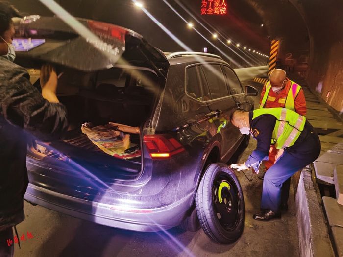 除此之外,还要查看高速路上的防护栏、防撞桶等设施是否完好,遇到路面有裂缝的,记录下来,等到春天解冻后开缝灌缝作业。不仅如此,巡查中遇到有车胎故障需要更换轮胎的,他们也会帮忙更换……