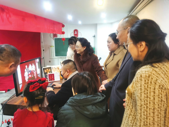 22日一大早,居民们就身穿新装,喜气洋洋迫不及待地按照预约时间来到社区二层活动大厅进行拍摄。社区和企业工作人员已提前将各种道具准备妥当,布置好了拍摄现场。“爸爸妈妈再靠近一些”“弟弟,你看这是什么”……拍摄现场不断传出快门的“咔嚓”声。在被灯笼、春联、福字等各类春节元素临时装饰的社区活动室内,摄影师不停地引导居民,抓拍最美瞬间。