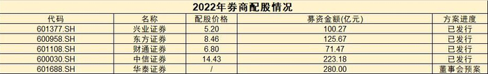 不过,由于需要投资者拿出真金白银参与,从二级市场走势来看,在披露配股预案的最初阶段,券商股价往往会出现一定幅度的调整。中金公司去年9月发布配股预案,次日盘中一度逼近跌停;华泰证券(SH601688)于去年最后一个交易日发布配股预案,拟募资280亿元,今年开盘首日下跌6.67%。