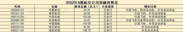2、七大上市航司合计再融资近500亿,2023年“冬去春来”可期