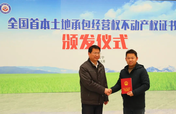 2022年末,全国首本封面标注“土地承包经营权”字样的不动产权证书在湖北省咸宁市咸安区颁发。这是该省推动土地承包经营权纳入不动产统一登记工作取得的重要成果。
