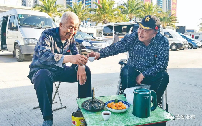 在路上的“房车候鸟族”喜欢传统的消息渠道——口口相授。车友聚集的地方,互相打声招呼,问去过哪儿,便可以聊上很久,李平就给不少车友介绍过茂名,在他看来,“茂名的人是真好,景是真美,所以我去年来过一次,今年还来。”在茂名旅行的这段时间里,李平也认识了当地的朋友。让李平印象最深的是,前些日子妻子身体有些不适,在得知李平妻子身体不适后,本地的朋友特意为李平夫妻二人买来药品,这让李平特别感动,感受到了这里人们的质朴,感受到了这座城市所特有的温暖。他也想回报这些温暖,前些日子,他在自己的车旁架了个锅,炸起了麻花,分给了去歌美海公园游玩的茂名本地人。