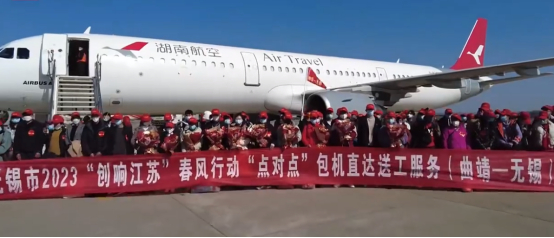据介绍,江苏省开年首架“点对点”务工返岗包机,已于1月27日(正月初六)降落至苏南硕放国际机场,120名来无锡务工人员平安落地。据介绍,这批务工者从云南老家历时28个小时、跨越近2000公里,抵达江苏无锡,当天,无锡市人社局组织了欢迎小分队,为抵锡务工人员送上了鲜花和诚意满满的返岗“大礼包”。此前,无锡市人力资源和社会保障局在过年前,就与云南当地人社部门取得联系,组织对接包机返岗事宜。