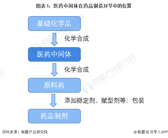 医药中间体是医药化工原料至原料药或药品这一生产过程中的一种精细化工产品,化学药物的合成依赖于高质量的医药中间体。换而言之,中间体是原料药工艺步骤中产生的、必须经过进一步分子变化或精制才能成为原料药的一种物料。