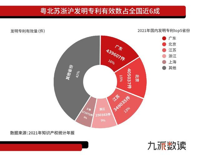 根据《2021年知识产权统计年报》显示,截至2021年年底,广东、北京、江苏、浙江、上海是全国最爱“搞发明”的五大省份。五省的发明专利有效量占当年全国总量的56%。