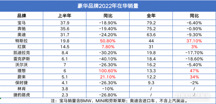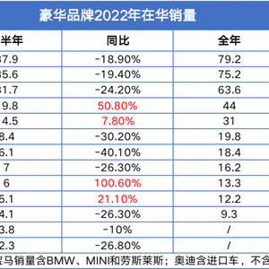 2022年,受全球疫情、芯片短缺、供应链危机等多重因素的影响,即便是宝马、奔驰、奥迪在内的头部豪华品牌,销量也出现了不同幅度的下滑。