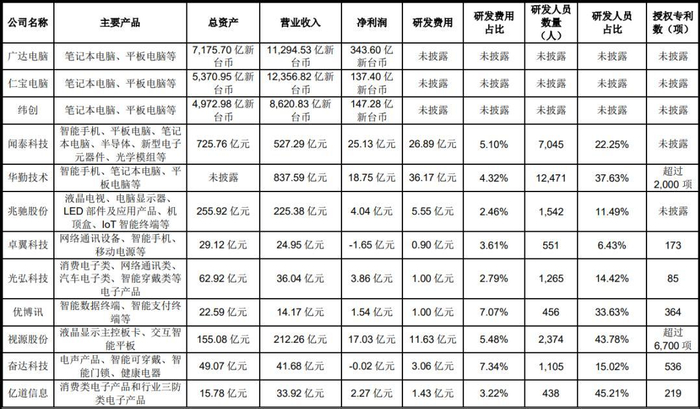 除了我国台湾的老牌 主流 ODM 企业外,近年来大陆未上市公司或拟上市公司中,华勤技术、上海 龙旗、宝龙达等也发展较快。在上市公司中,闻泰科技、卓翼科技、兆驰股 份、光弘科技等也是以 ODM 或 EMS 为模式从事代工业务的企业,但产品主要 集中在智能手机、网络通讯设备、家庭视听类产品或其他消费类电子产品,且 上述公司均以自主生产制造模式为主,因此,国内尚无经营产品类别和业务结 构完全与公司相同的上市企业。