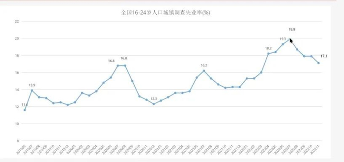 2022年,我国高校应届毕业生人数首次突破1000万,达到1068万。从就业大背景看,国家统计局数据显示,16—24岁青年失业率在2022年7月达19.9%,这也是自统计局2018年4月发布此项指标以来的最高点;在新增城市就业岗位口径上,2022年虽超额完成1100万目标达到1200万,但是考虑到青年人以外广大的就业群体,供需之间的缺口也依然巨大。