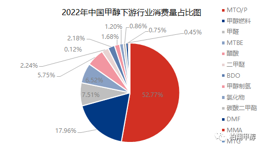下游MTO占比52.77%,甲醇燃料17.96%,甲醛7.51%,MTBE6.52%,醋酸5.75%,二甲醚2.24%,BDO2.18%,其他5.07%。