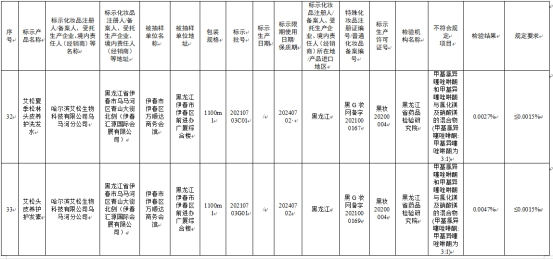 标示哈尔滨艾松生物科技有限公司乌马河分公司生产的艾松夏季松林头皮养护洗发水、艾松头皮养护护发素,不符合规定项目均为甲基氯异噻唑啉酮和甲基异噻唑啉酮与氯化镁及硝酸镁的混合物(甲基氯异噻唑啉酮:甲基异噻唑啉酮为3:1),其检验结果分别为0.0027%、0.0047%,规定要求均为≤0.0015%,检验机构均为黑龙江省药品检验研究院。