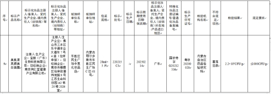 标示宝丽(广东)生物科技有限公司注册/生产的美肌漾亮颜美白面膜,不符合规定项目为菌落总数,其检验结果为2.2×10^4CFU/g,规定要求≤1000CFU/g,检验机构为内蒙古自治区药品检验研究院,总经销企业为南京同仁堂健康产业有限公司。