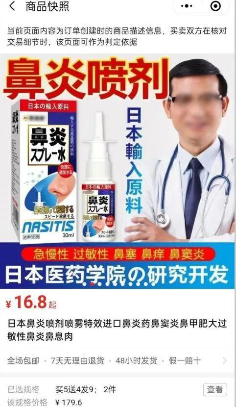 王瑜深受鼻炎困扰,一直在寻找治疗的特效药。某次,在网络平台搜索关键词“鼻炎”后,“苗药禾草堂”所售的一款日本进口鼻炎特效喷剂引起了他的注意。“进口特效鼻炎药”“99万+人都用他!管用!鼻炎有救啦”等产品广告语,成功地燃起了他治愈鼻炎的希望。