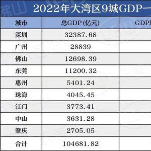 2022年大湾区9个城市群(不含港澳)GDP系数出炉:全部实现正增长,总额超过10.46万亿元人民币!