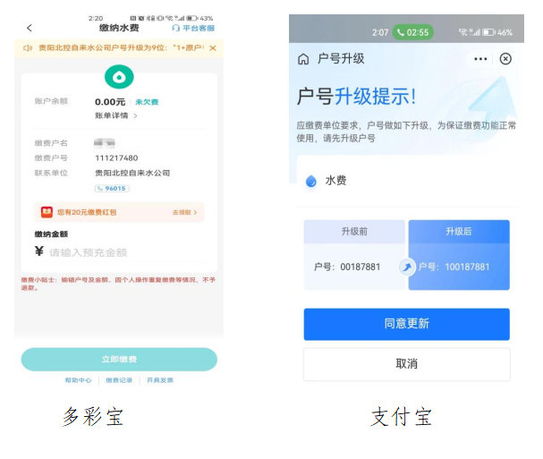 为优化服务渠道,贵阳北控水务有限责任公司近期对观山湖区、南明区、云岩区、经开区的营业服务系统进行了升级。升位规则为:“1”+原有缴费8位编号;例如:原缴费编号01234567,现升位为101234567。同时,现已恢复微信、支付宝、多彩宝等网上缴费渠道,并对已绑定缴费编号的用户完成自动升位处理(详见附件图片),烦请广大用户在进行网上缴费的同时,核对自己的用户号、户名及缴费单位能否正常对应。
