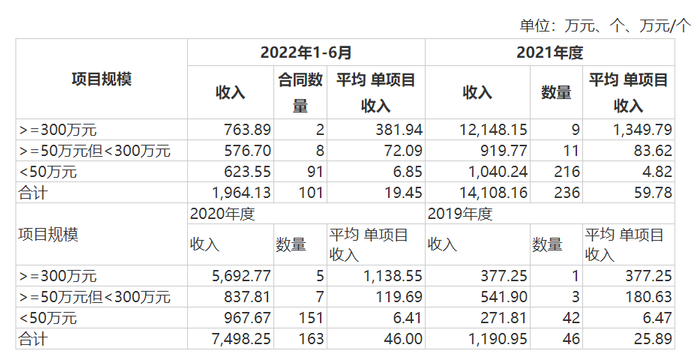 营收占比差异不大的两项业务在毛利率上表现各异,前者的毛利率在2019年~2021年及2022年上半年(以下简称报告期)均为负值,分别为-579.91%、-88.79%、-24.38%、-483.74%,后者的毛利率则一直为正值但波动明显,报告期内分别为31.88%、57.68%、10.55%、20.25%。