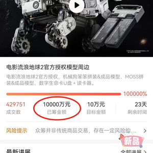 早在2019年《流浪地球》第一部电影上映时,也有多款IP衍生品众筹上线。本次斩获亿元众筹的赛凡科幻4年前也曾承接《流浪地球》第一部的众筹项目,产品包含行星发动机摆件、运载车摆件、徽章等产品。该众筹项目曾获得了769万元的销售金额,不过由于模型玩具售价超2000元,最终成交的模型产品仅数百套。